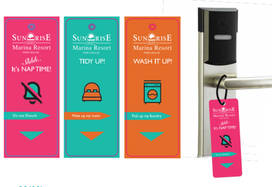 Collaterals Door Knobs Estimated reading: 2 minutes 13 views Introduction Door Knobs are to be placed in the room prior to the guest’s check-in on the door knob from the inside Door Knobs Specs Size 14.2h x 5.4w cm Material 350 gr. couche paper – 4c/4c Treatment Lamination Matte Extras Die-cut / Leaf rope